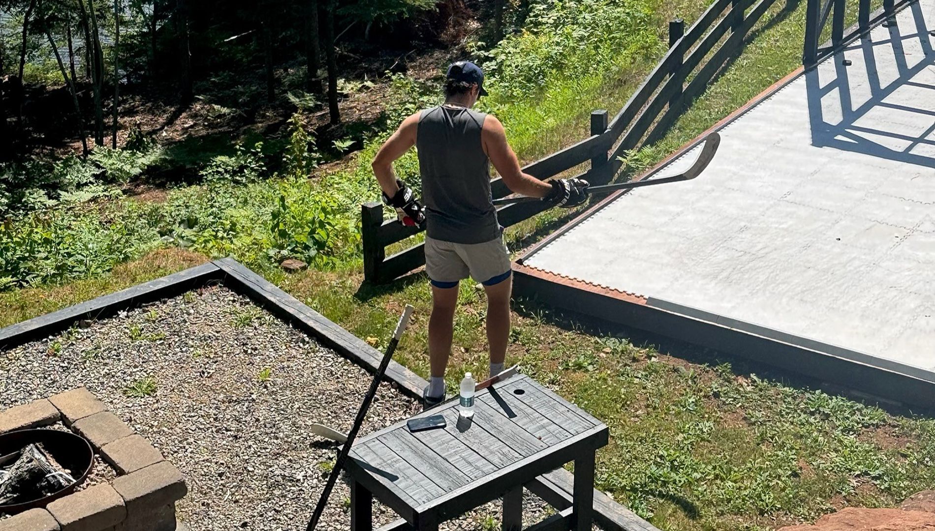C’est connu, durant l’été, Noah aime bien lancer des rondelles au filet, afin de garder sa touche offensive, ayant fait construire une surface extérieure en conséquence.