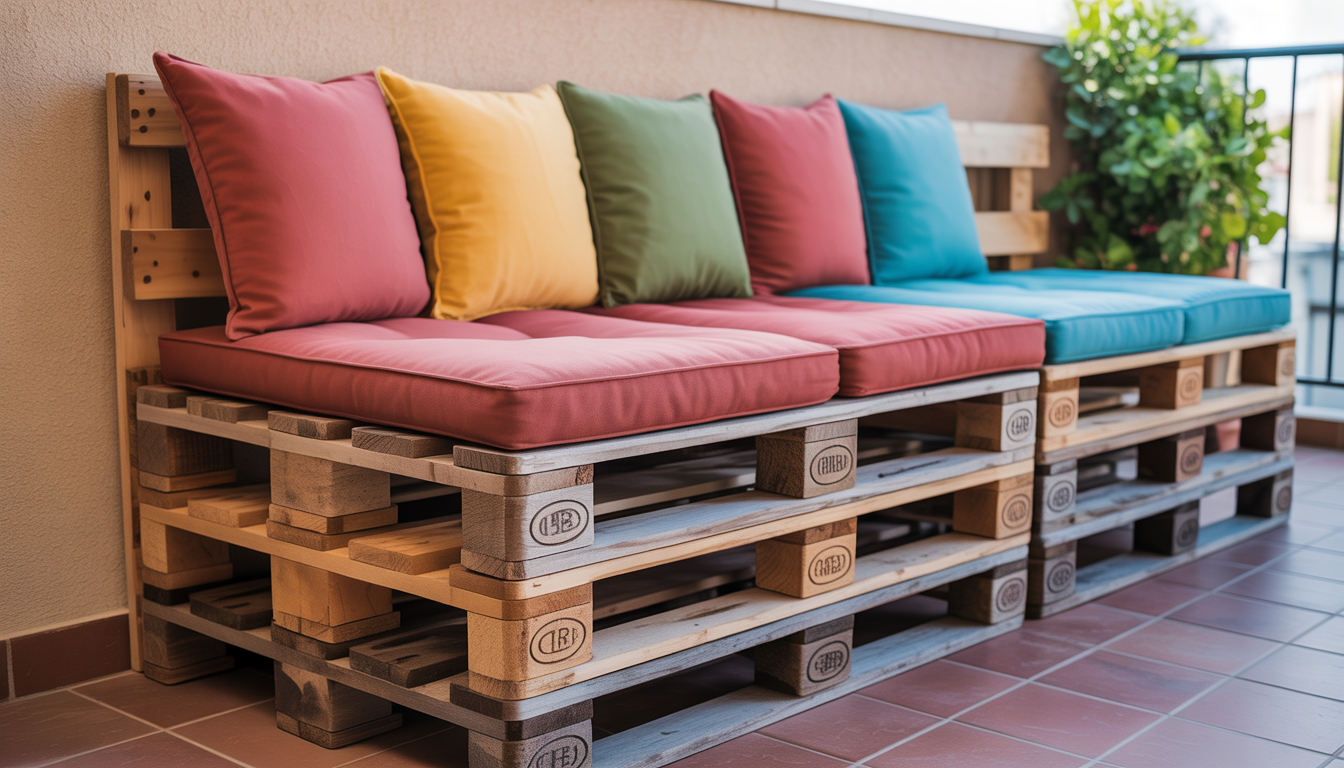Récupérez deux palettes, poncez-les et empilez-les pour créer un banc rustique et tendance. Ajoutez quelques coussins pour le confort. Ce DIY coûte moins de 30$ et donne un look unique à votre balcon. Les palettes sont faciles à trouver dans les quincailleries ou sur les sites de petites annonces.