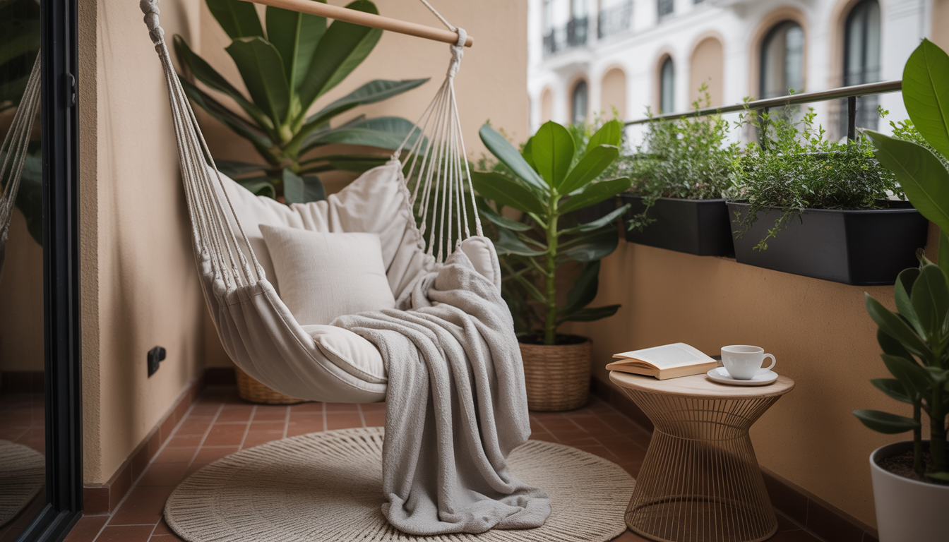 Un hamac ou une chaise suspendue transforme votre balcon en coin détente ultime. Il existe des modèles compacts adaptés aux petits espaces. Selon une enquête, 60 % des Québécois rêvent d’un espace de relaxation extérieur. Offrez-vous ce luxe pour moins de 50$!