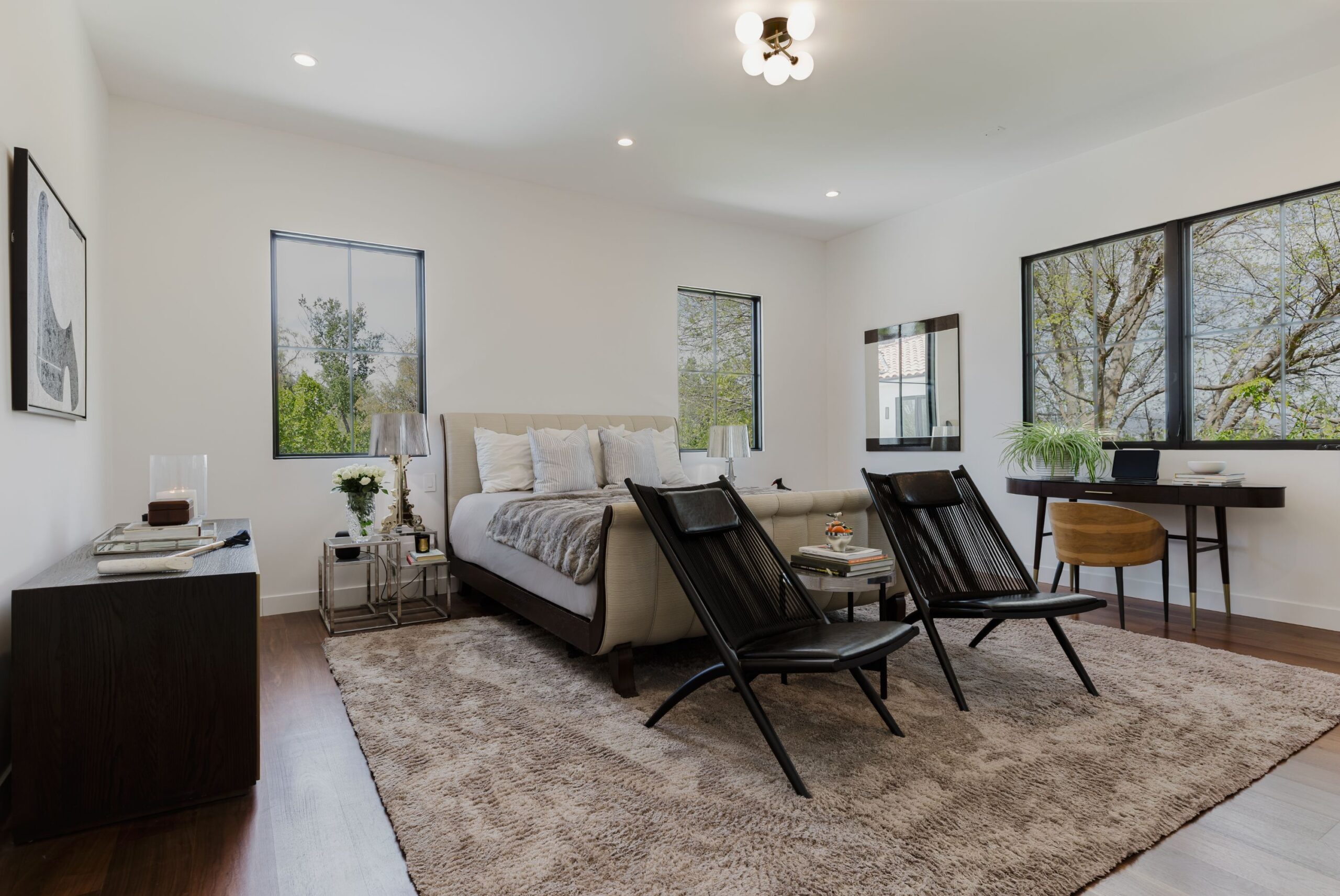 Au niveau inférieur, on y trouve une chambre d’amis avec salle de bains privative. La propriété dispose de.6 chambres en tout.