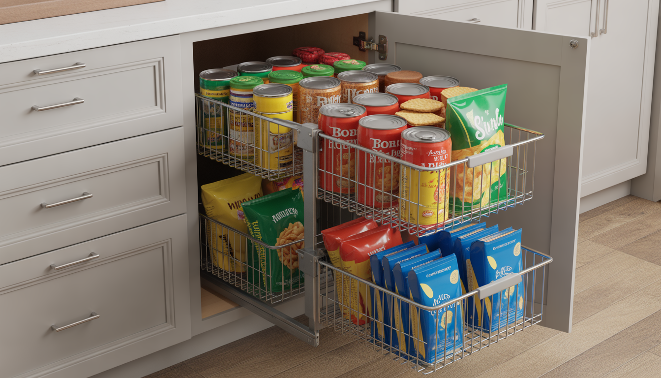 Les paniers coulissants transforment les étagères profondes en tiroirs accessibles. Plus besoin de sortir tout le contenu pour attraper un pot de sauce! Ils sont parfaits pour les snacks, les conserves ou les sacs de chips. Pour ceux qui aiment la cuisine rapide, La Boîte du Chef propose des plats prêts à ranger dans ces paniers pour des repas express.
