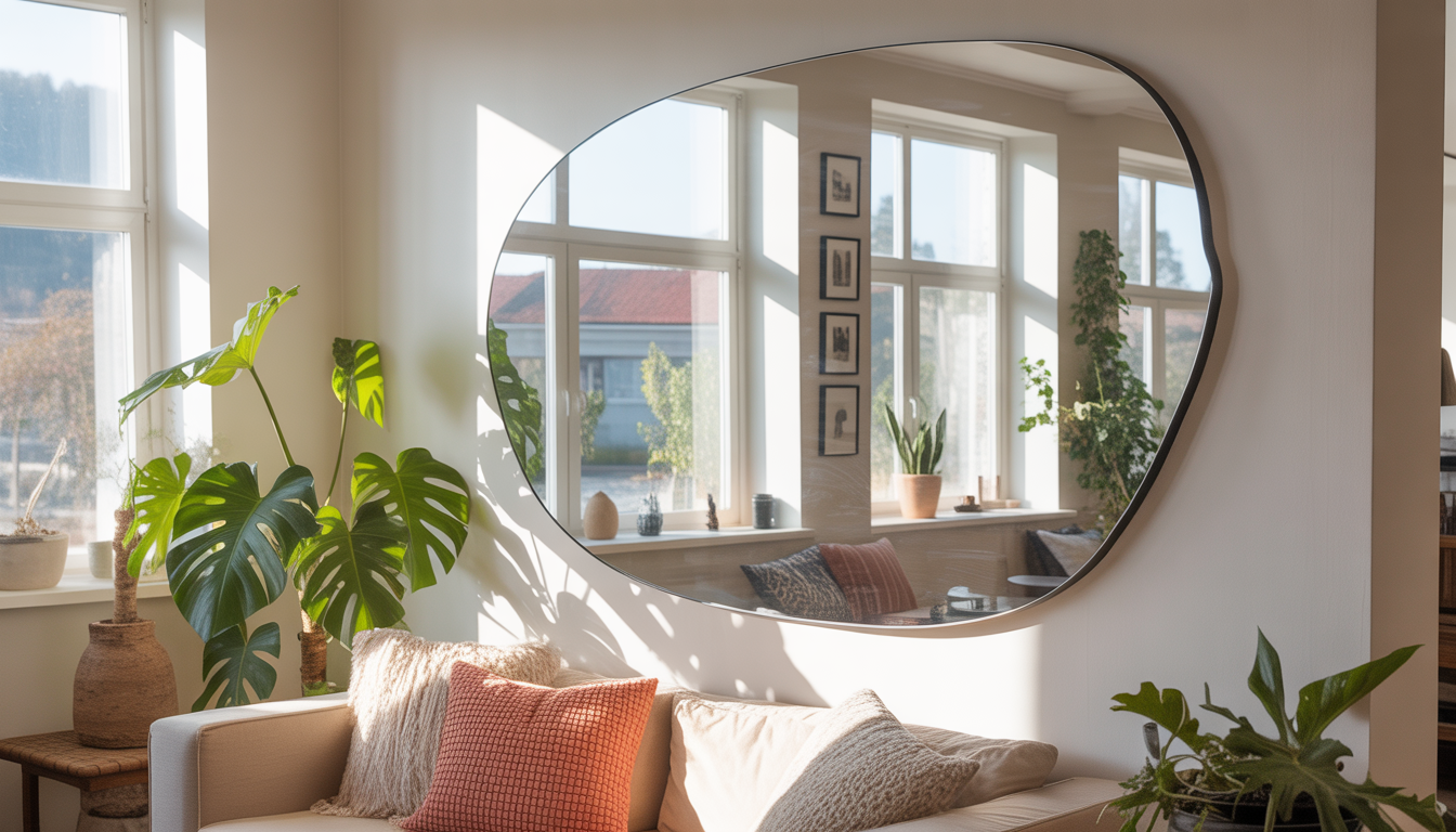 Un miroir bien placé double visuellement la taille de votre salon! Installez-en un grand face à une fenêtre pour refléter la lumière naturelle et donner une impression d’ouverture. Les designers recommandent d’oser les formes originales pour ajouter une touche déco unique. En plus, un miroir mural est facile à installer et s’adapte à tous les styles, du scandinave au bohème.